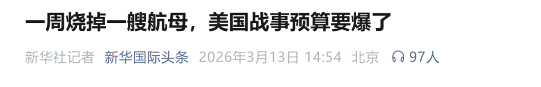报道称,美国政府暂未就何时结束战事设定日期。美国总统特朗普先前称,行动可能持续四周或更长。美国国防部长赫格塞思则拒绝明确任务时间表。